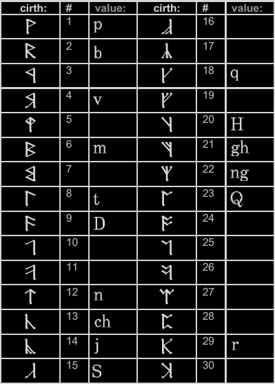 · Tyinganwa Certaiva Tencelë - Klingon Cirth Mode ·